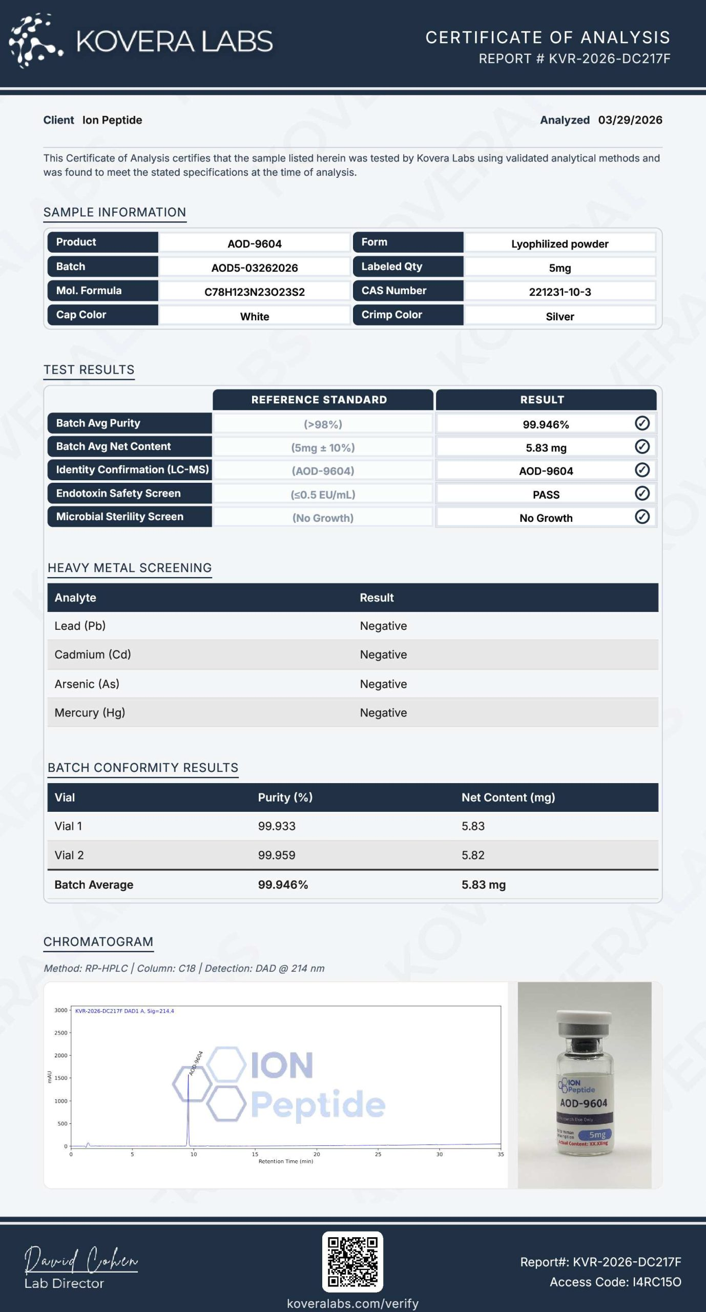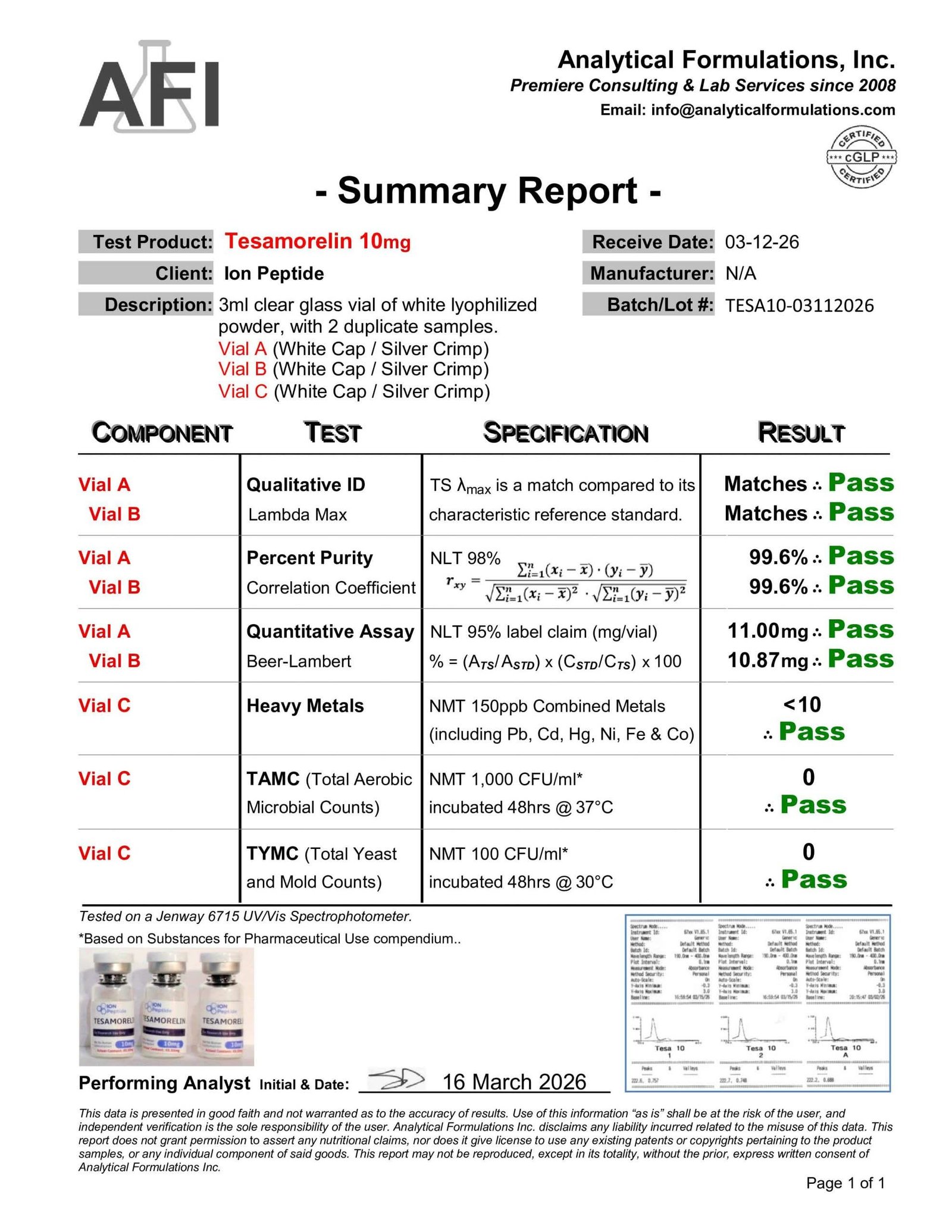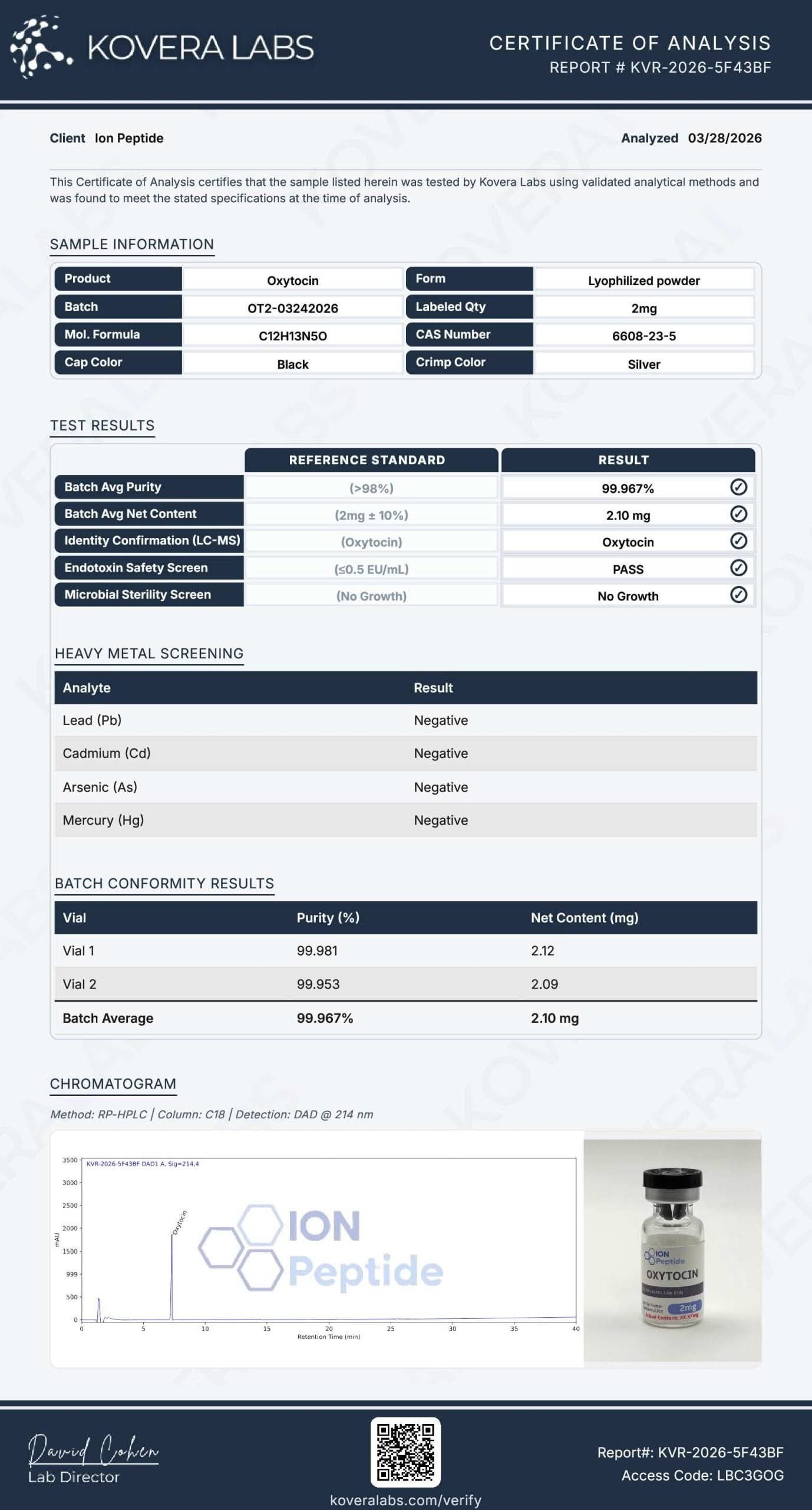 Lab Results PT-141 View Result Oxytocin View Result Ipamorelin View Result CJC-1295 No Dac View Result Bac Water View Result NAD+ View Result KLOW View Result Tesamorelin View Result AOD-9604 View Result MOTS-C View Result GHK-CU View Result RETATRUTIDE View Result SEMAX View Result BPC-157/TB-500 View Result MLT II View Result BPC-157 View Result Subscribe for the latest news and updates!