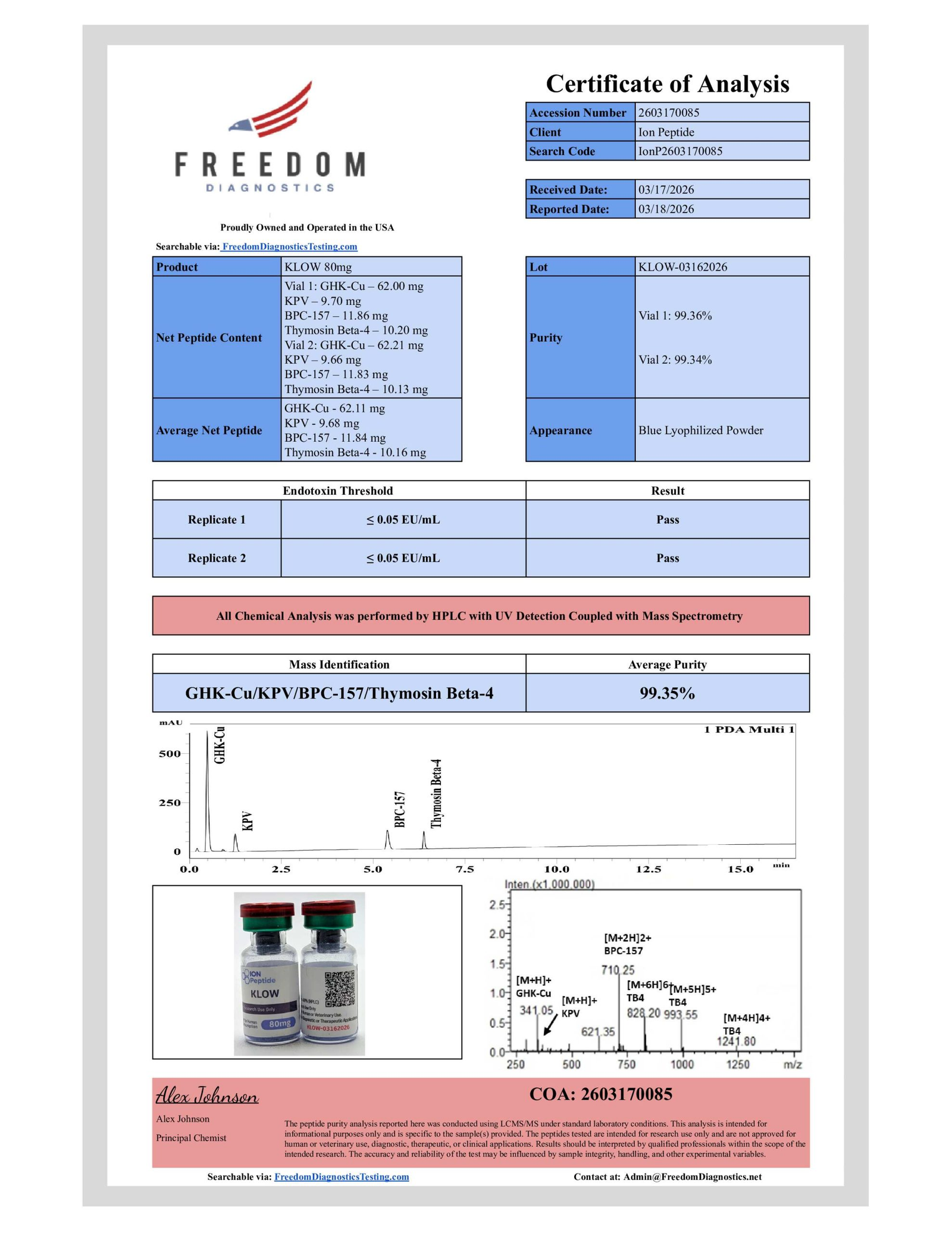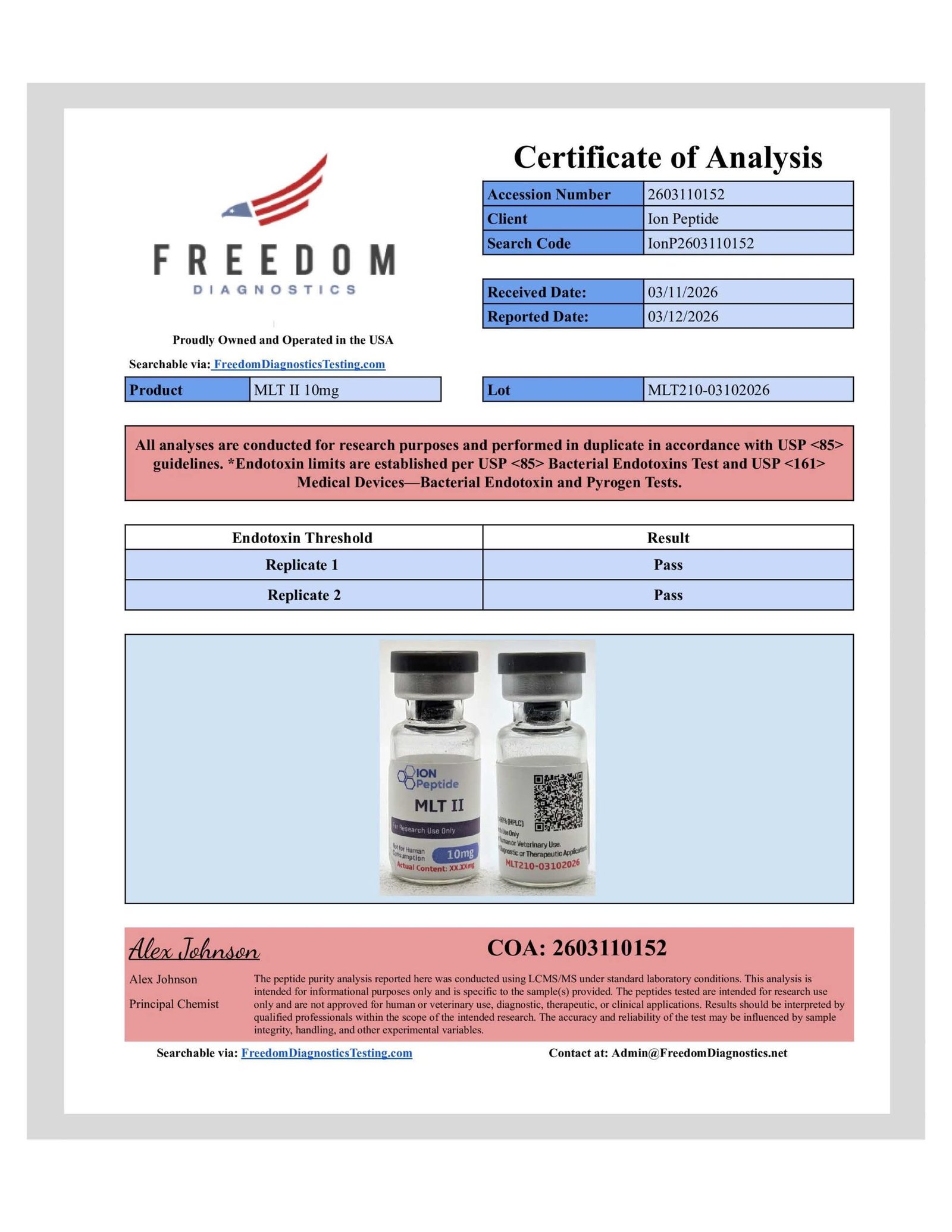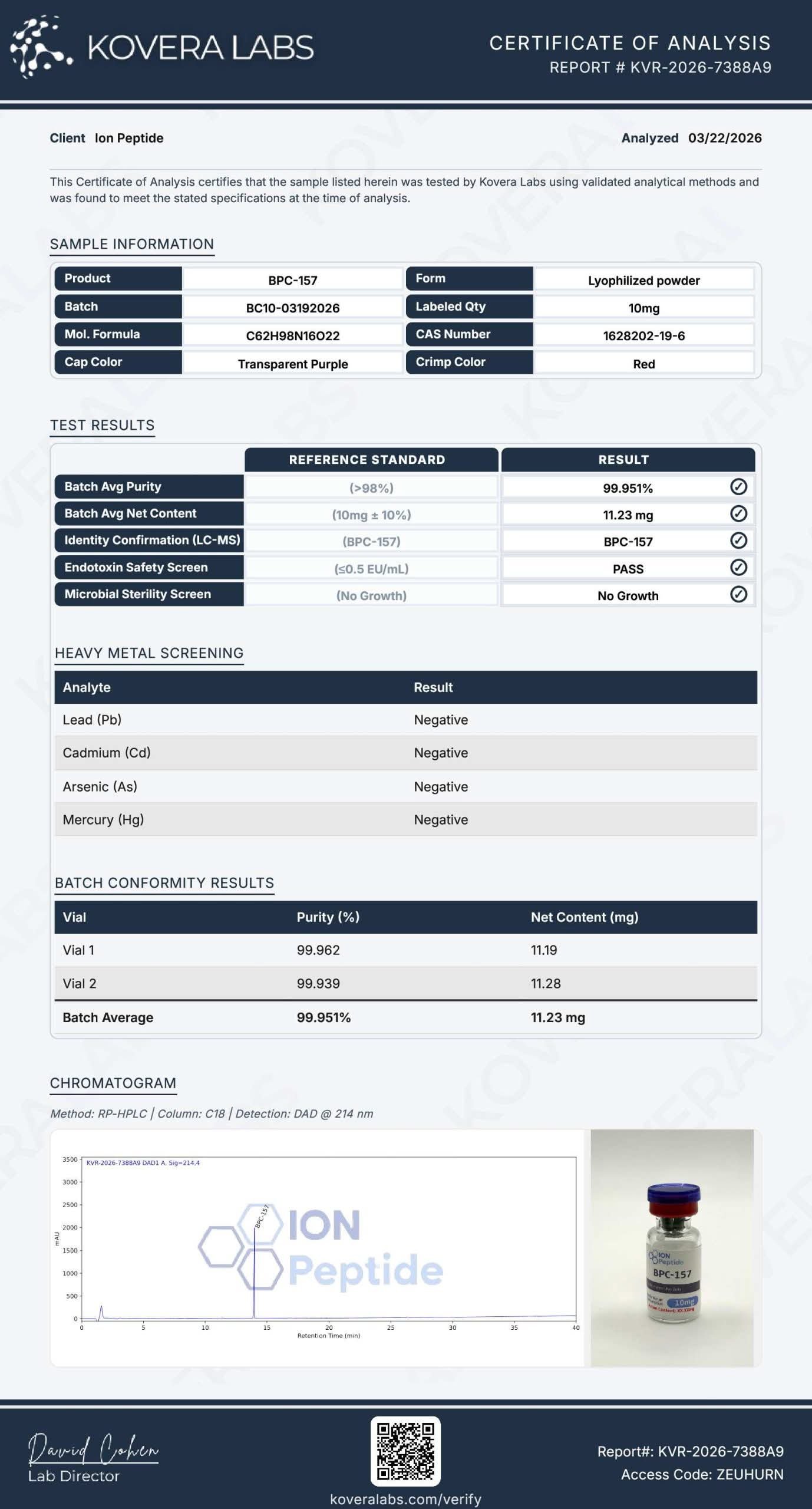 Lab Results PT-141 View Result Oxytocin View Result Ipamorelin View Result CJC-1295 No Dac View Result Bac Water View Result NAD+ View Result KLOW View Result Tesamorelin View Result AOD-9604 View Result MOTS-C View Result GHK-CU View Result RETATRUTIDE View Result SEMAX View Result BPC-157/TB-500 View Result MLT II View Result BPC-157 View Result Subscribe for the latest news and updates!